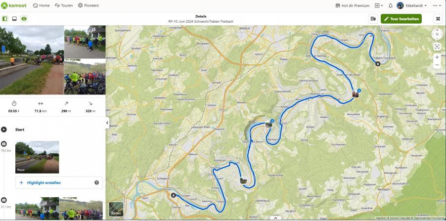 An diesem Tag wurde von Schweich nach Traben-Trarbach geradelt in vielen Windungen. Unser Halt in Bernkastel-Kues. Am Ende brachte man über 71 km hinter sich.