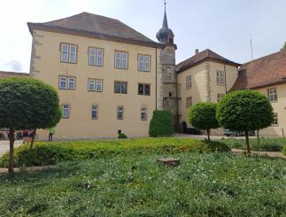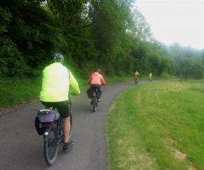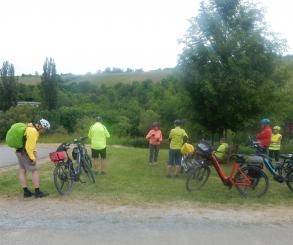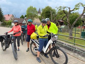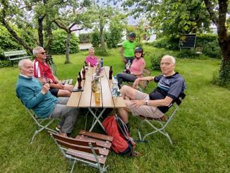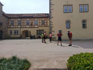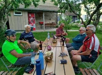 An diesem Tag fuhren wir nur zu acht. 4 Personen hatten sich abgemeldet. Der eine oder andere konnte nicht wegen Schmerzen oder ähnliches. Insgesamt fuhren wir an diesem Tag 73 km. Es ging wieder auf und ab und unterwegs sahen wir eine Uhr (nach 9,3 km), die man so nicht immer sieht und dann haben wir an einem tollen Pausenplatz angehalten (16 km). Wir fuhren die Strecke über Adolzhausen, Spielbach, Wermutshausen, Laudenbach, Weikersheim bis nach Bad Mergentheim.