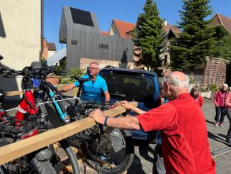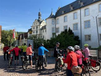 Dieser Tag war leider unser letzter. 50 km sind wir geradelt. Über Markelsheim, Weikersheim, Niederstetten, Herbsthausen nach Bad Mergentheim ging unsere Strecke. Einen Halt im Schloß Weikersheim war dabei. Wetter war kühl aber noch erträglich. Gegen 15.00 Uhr wurden die Räder dann verladen zur Heimfahrt. Mittagessen war in der Herbsthäuser Brauerei.