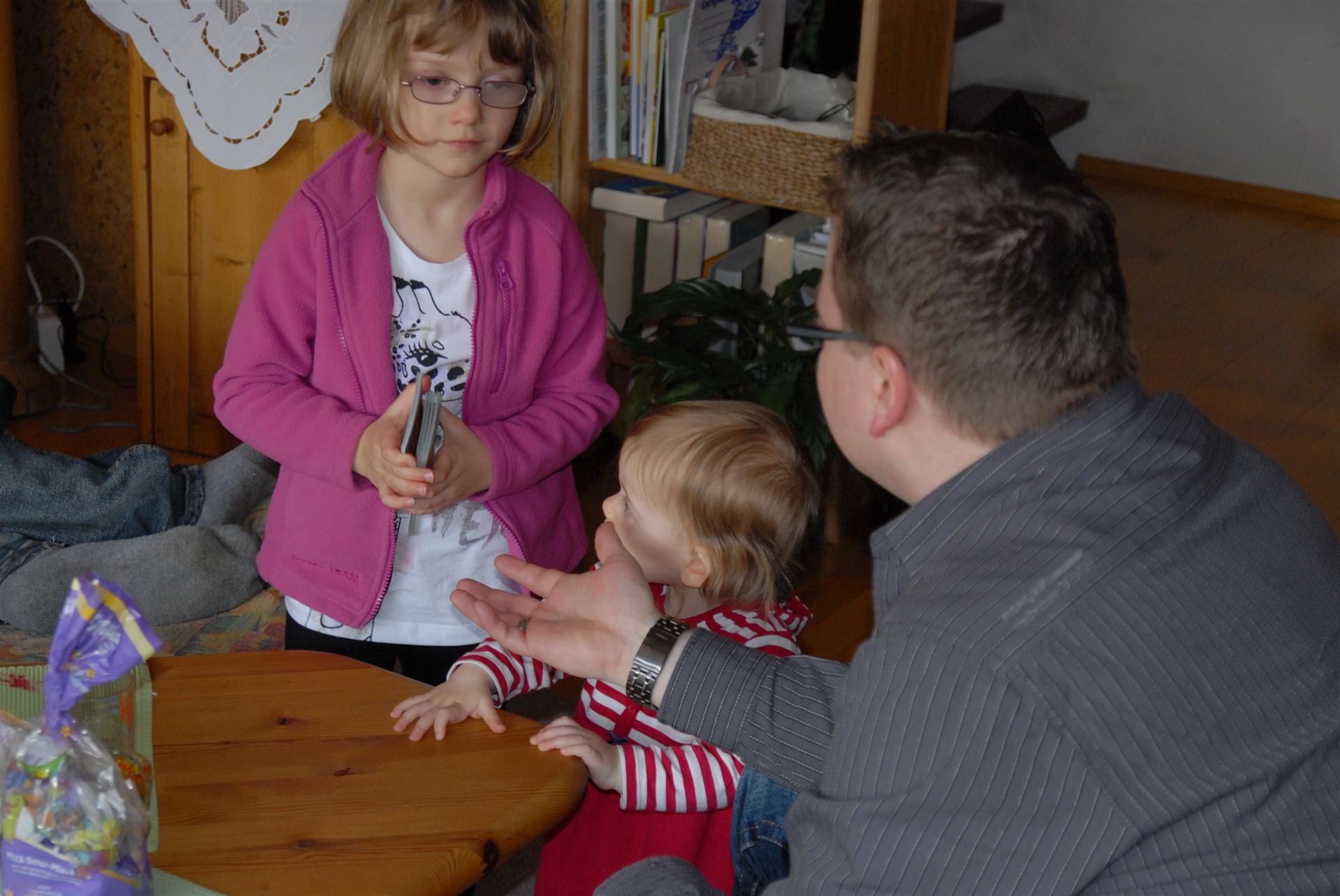 Man trifft sich bei Oma und Opa in Lauffen. Mit dabei Milena, Lea und Lukas sowie die Eltern.