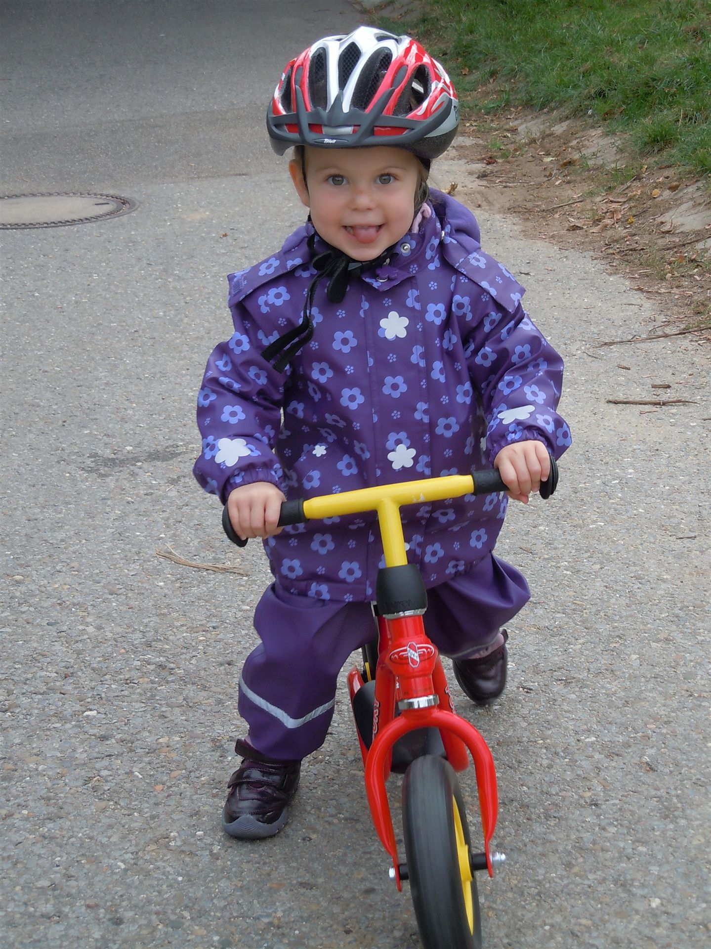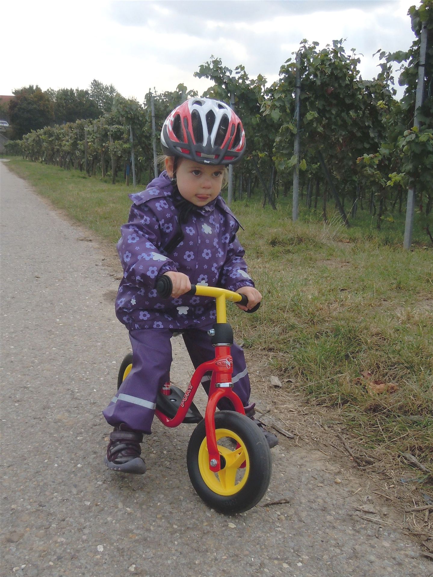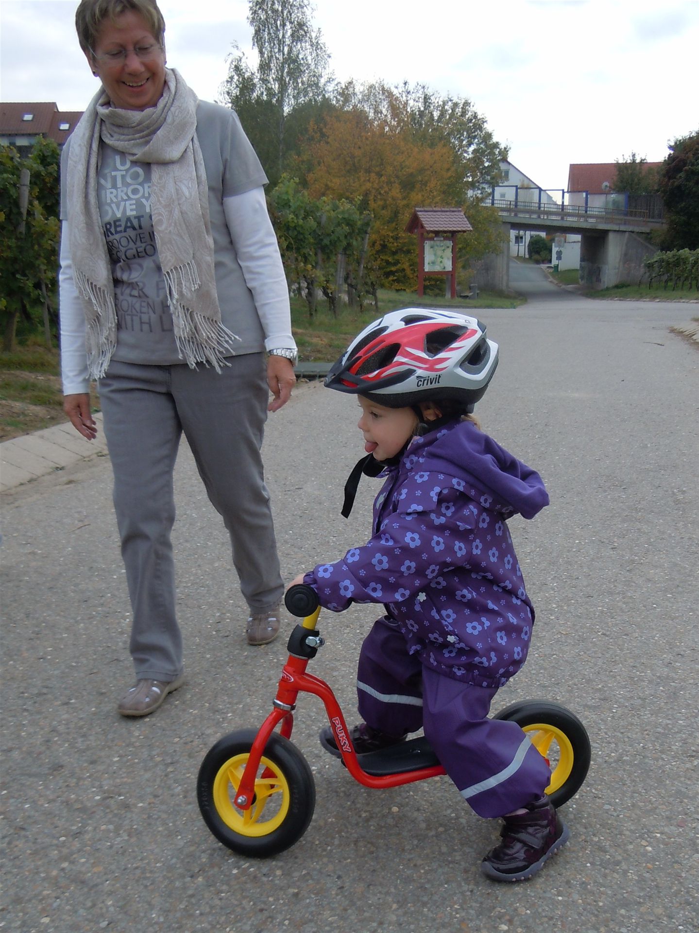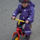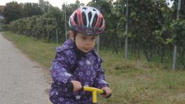 Wir sind an diesem Tag mit Daniel, Sabine und den Kindern gemeinsam unterwegs auf einem Spaziergang. Milena fährt mit dem Rad und Nicklas ist unzufrieden