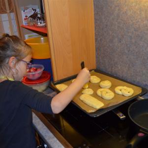 Was die drei alles machen an diesem Tag, mit Oma wird gebacken.