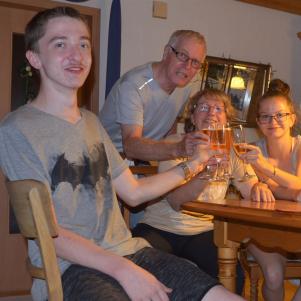Oma & Opa, sind gemeinsam in Pforzheim beim Gasbehälter, mit dabei Lukas, Nicklas und Lea und für alle von Interesse. Erst aber wird zum Geburtstag angestoßen.