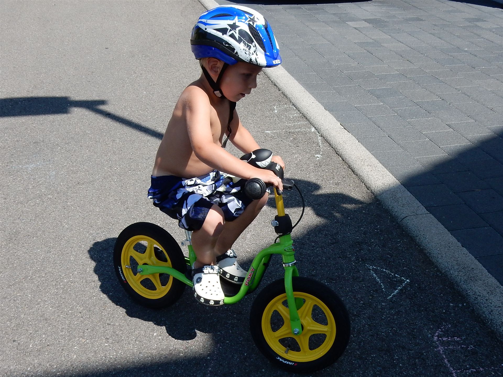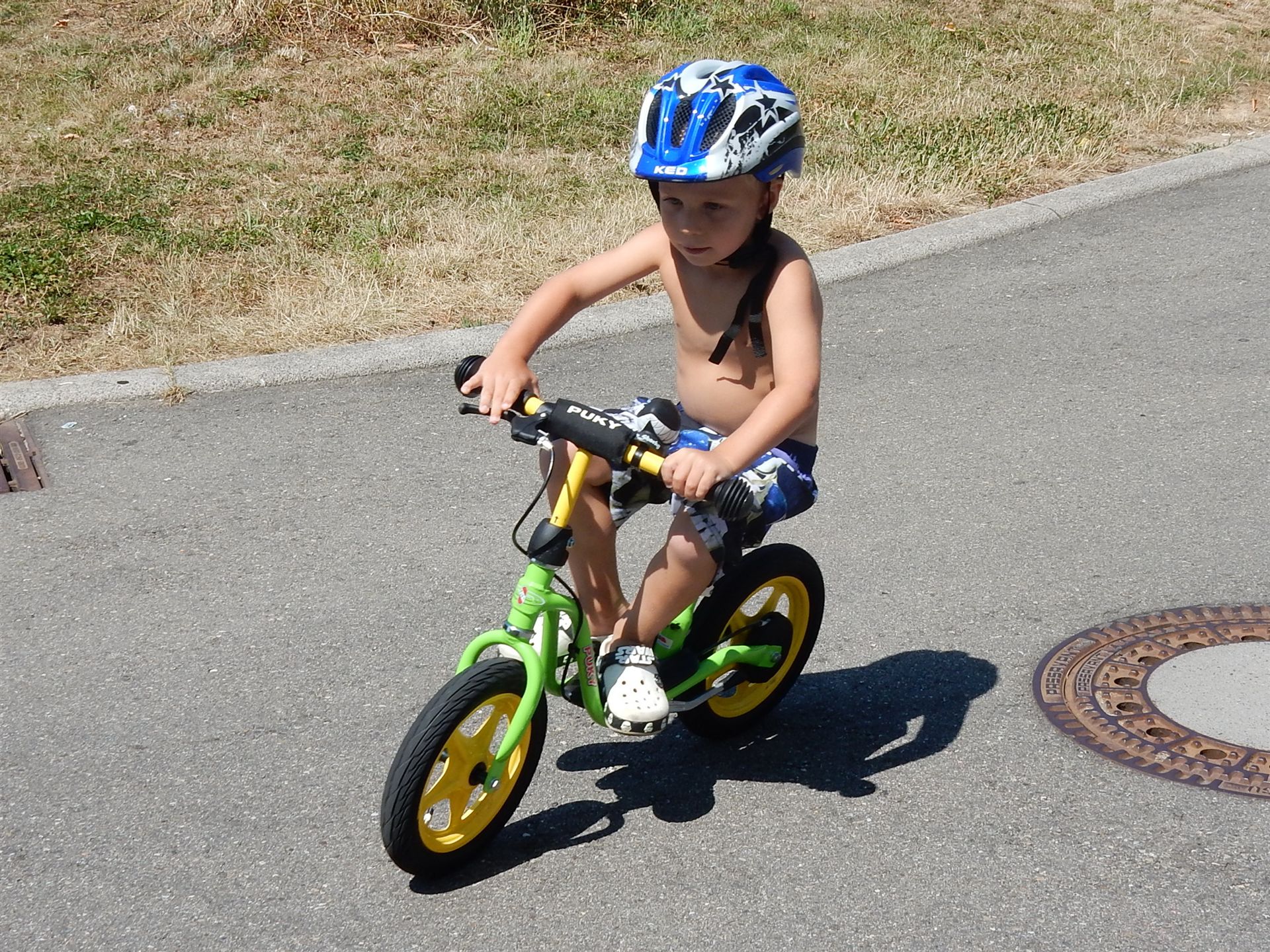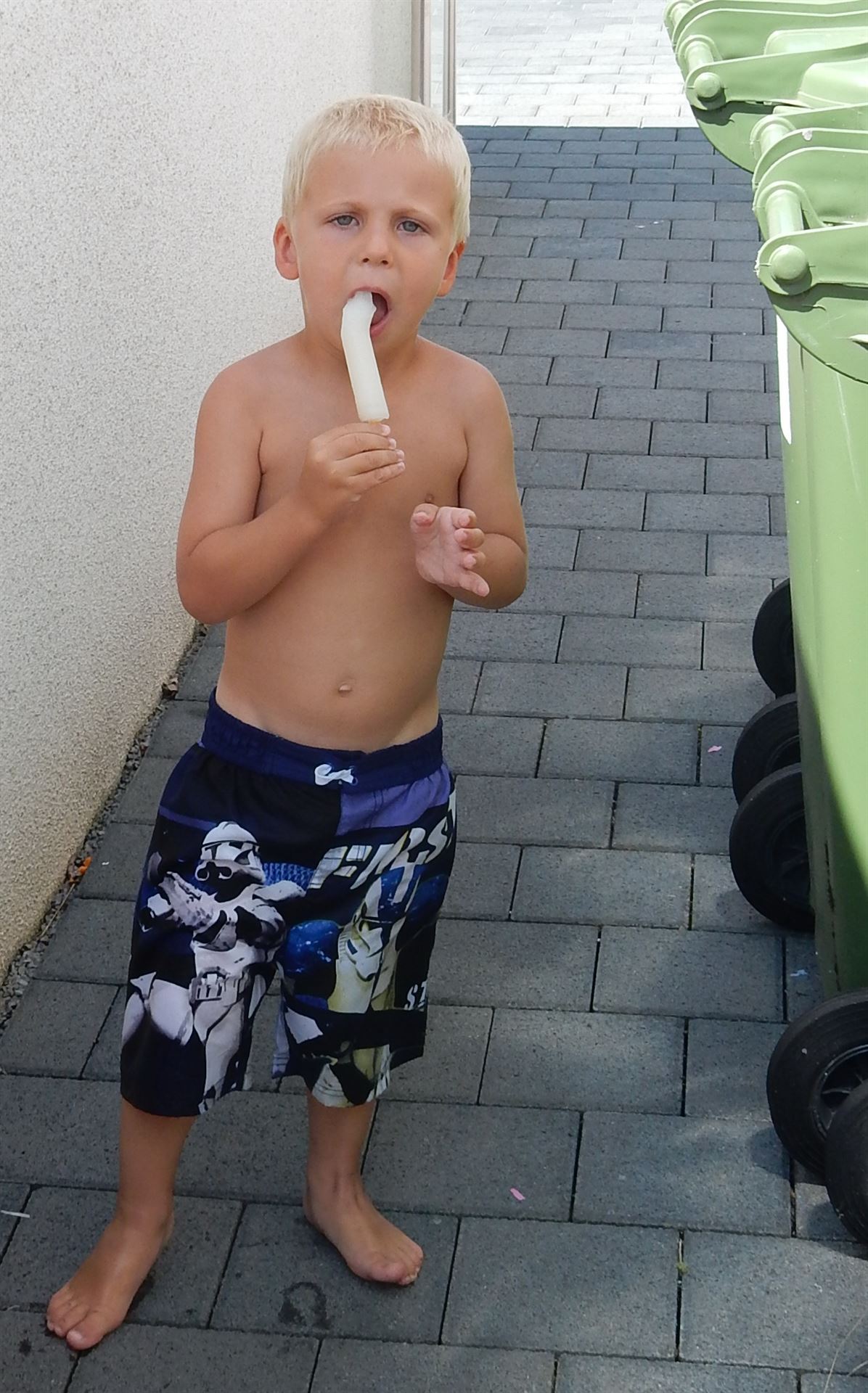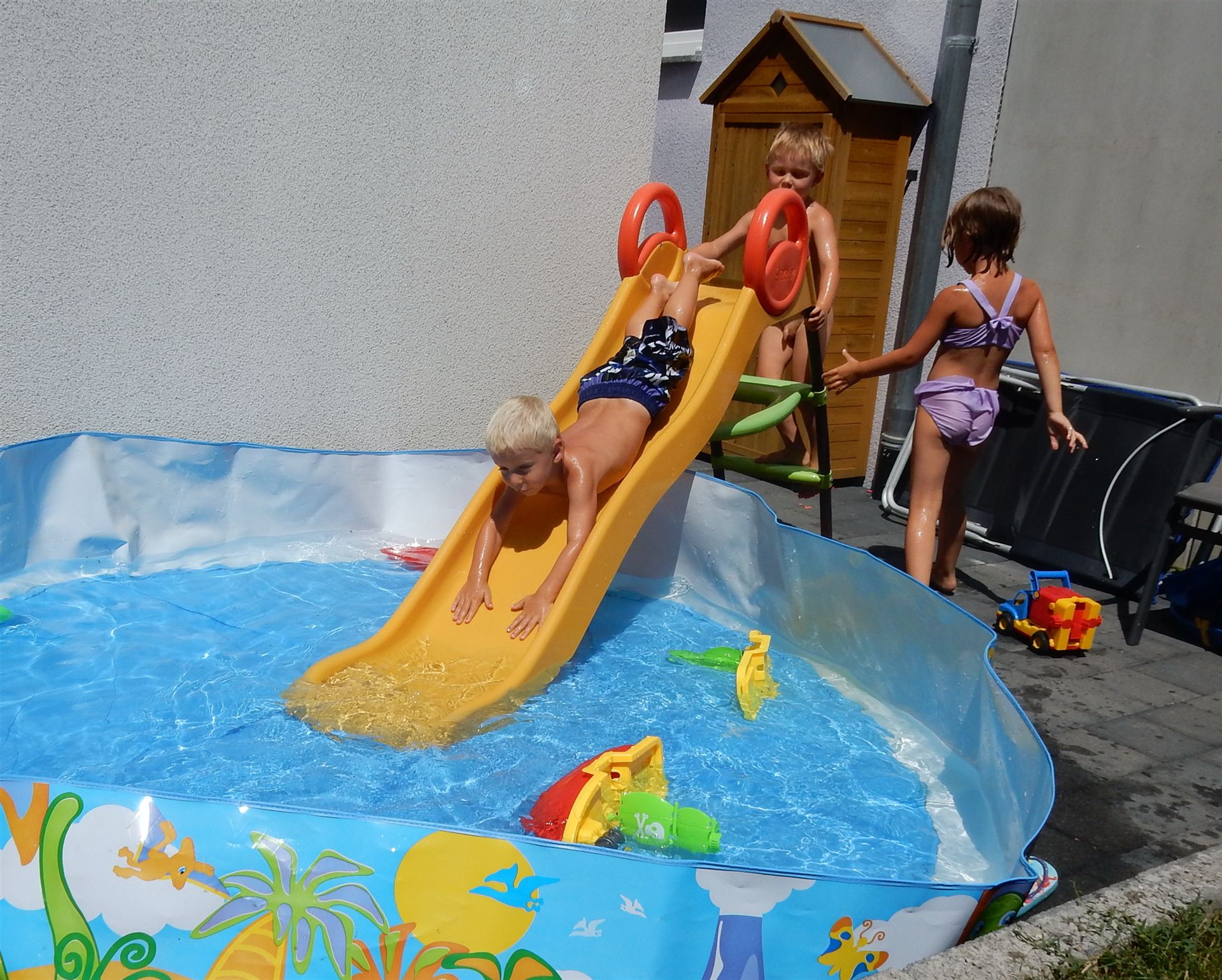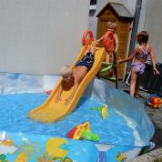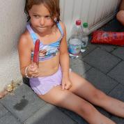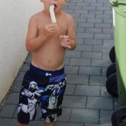 An diesem Tag ist es sehr warm und wir sind in Gemmrigheim bei Daniel. Die Kinder baden oder fahren Laufrad. Bei dieser Wärme gibt es auch ein Eis.