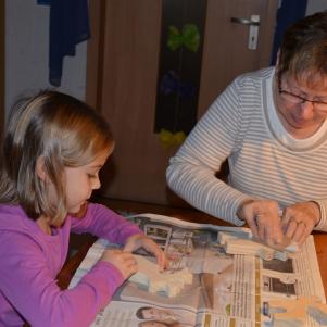 Milena ist bei Oma und es wird gebastelt, danach noch gebacken und gespielt.