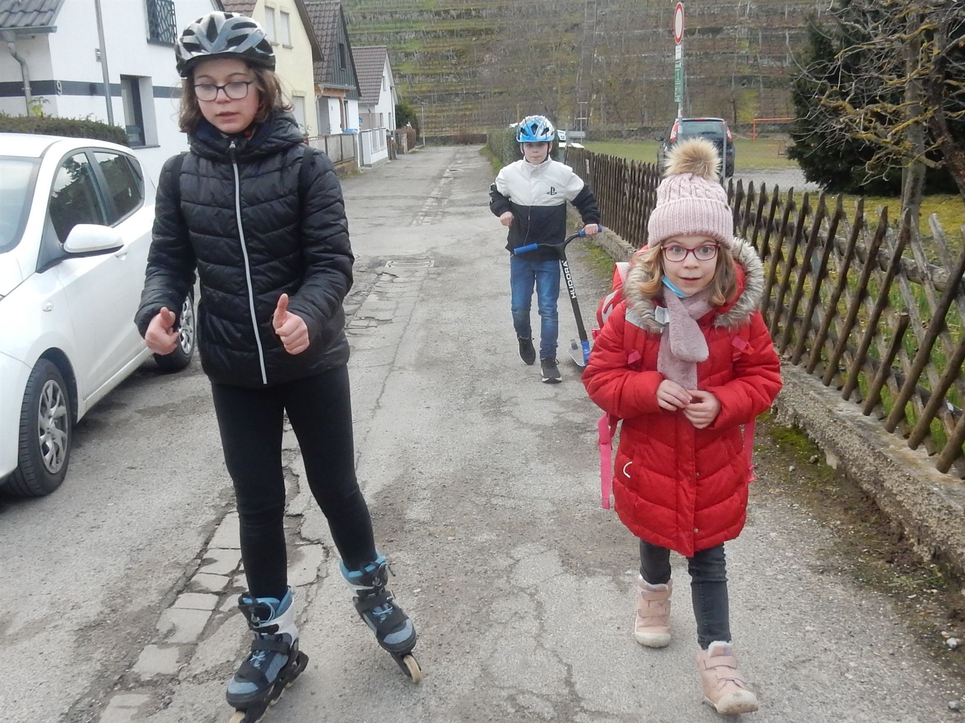Luisa wird von Milena und Nicklas von der Schule abgeholt. Dann kommen sie auch bei uns vorbei.