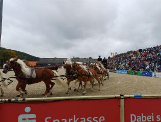 Mit Milena & Luisa waren wir in Marbach (Schwäbische Alb) auf der Hengstparade. Das Wetter war leider nicht das Beste (Regenkleidung war Pflicht) aber es war sehr unterhaltsam.