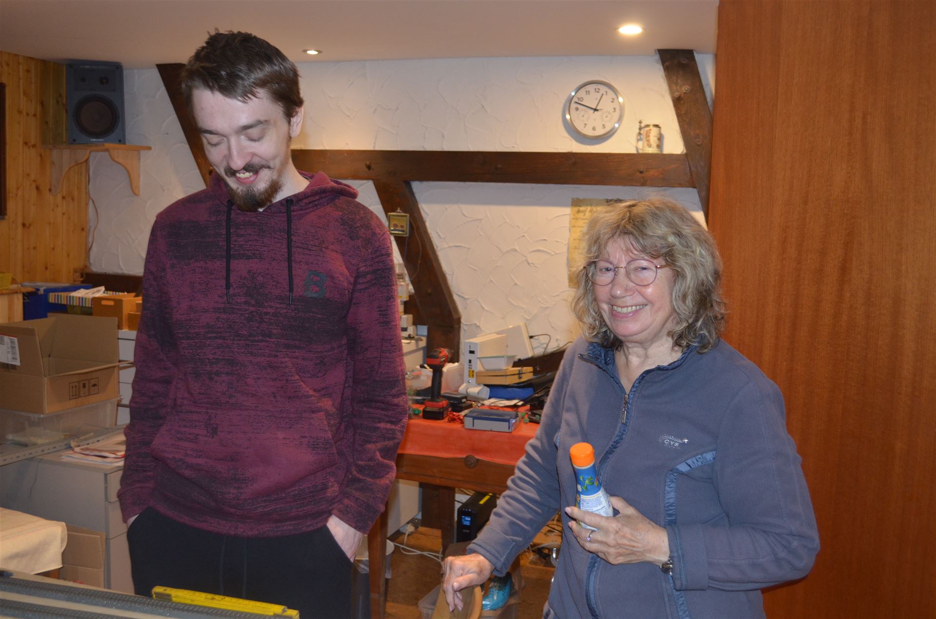 Lukas ist nach Lauffen gekommen um mit Opa wieder an der Eisenbahn zu arbeiten. Es geht voran. Oma schaut sich alles genau an.