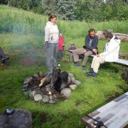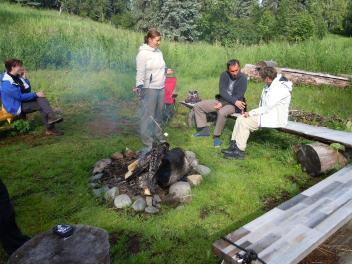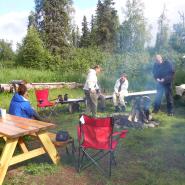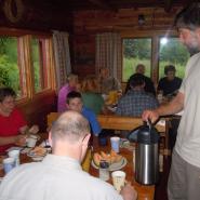 Unsere erste Übernachtung mit Frühstück von Eric serviert. Dann eine kleine Bootstour unternommen. Dann wurde vor der Hütte gegrillt.