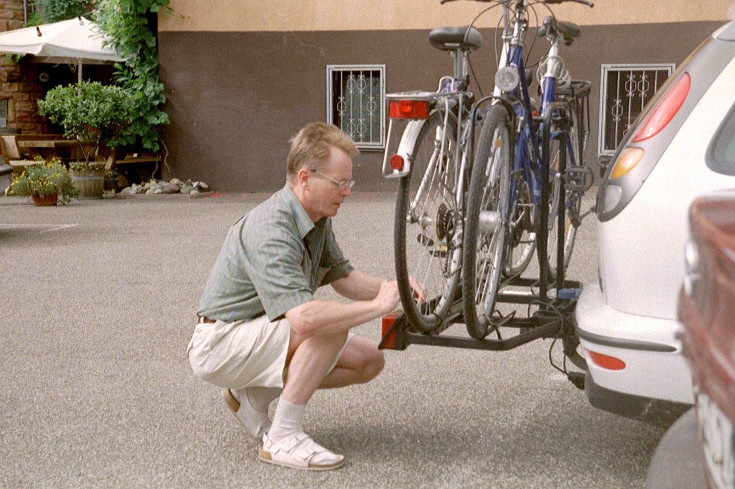 Wir (Marlene & Ekkehardt) machen Urlaub in der Pfalz. Man fährt mit dem Auto hin und die Räder sind dabei, da man auch Radtouren durchführt.