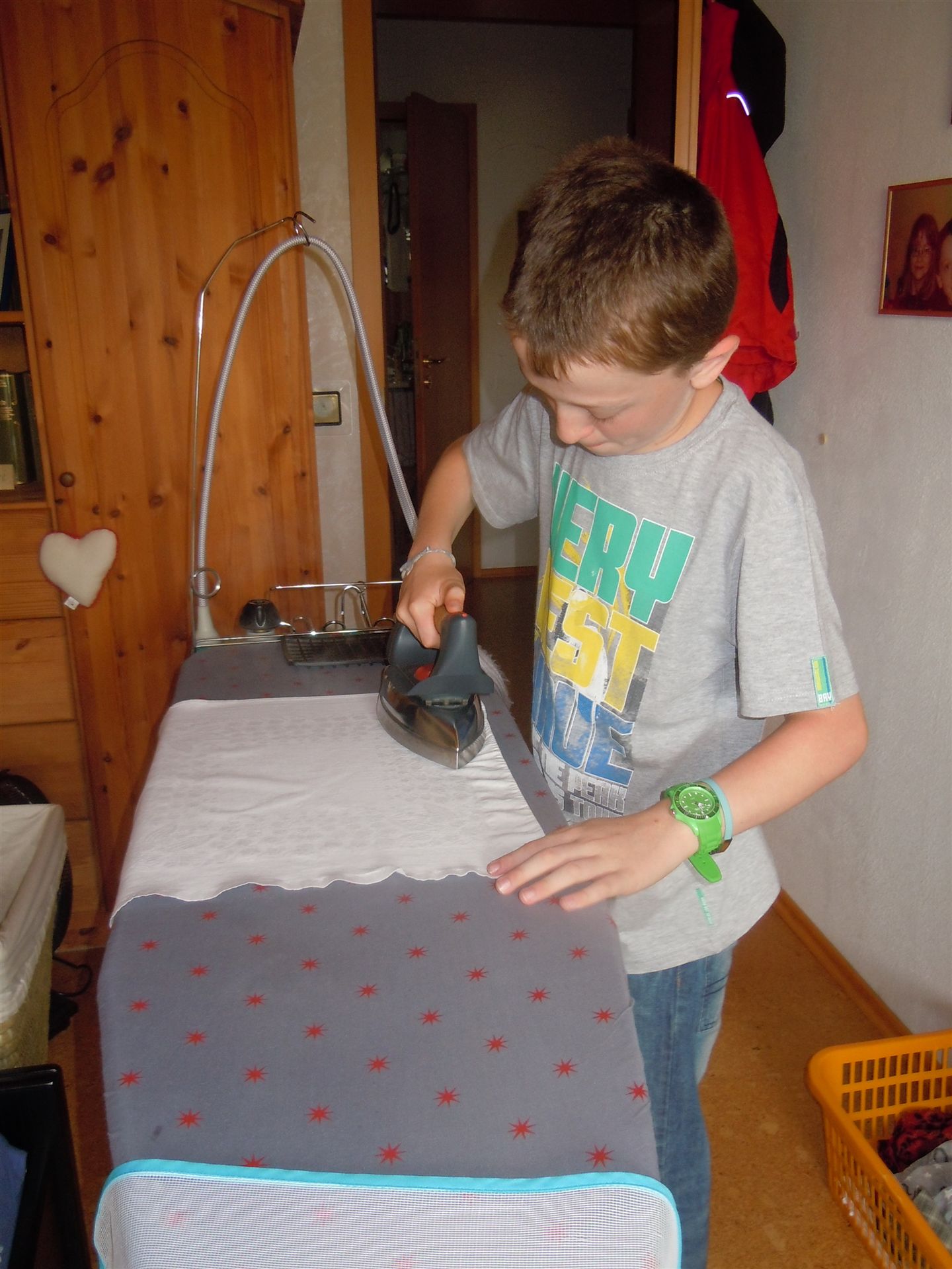 11. Aug. 2013: Gemeinsam mit Lea & Lukas schauen wir uns das Salzbergwerk in Bad Friedrichshall an. Zu Hause lernt Lukas bügeln
