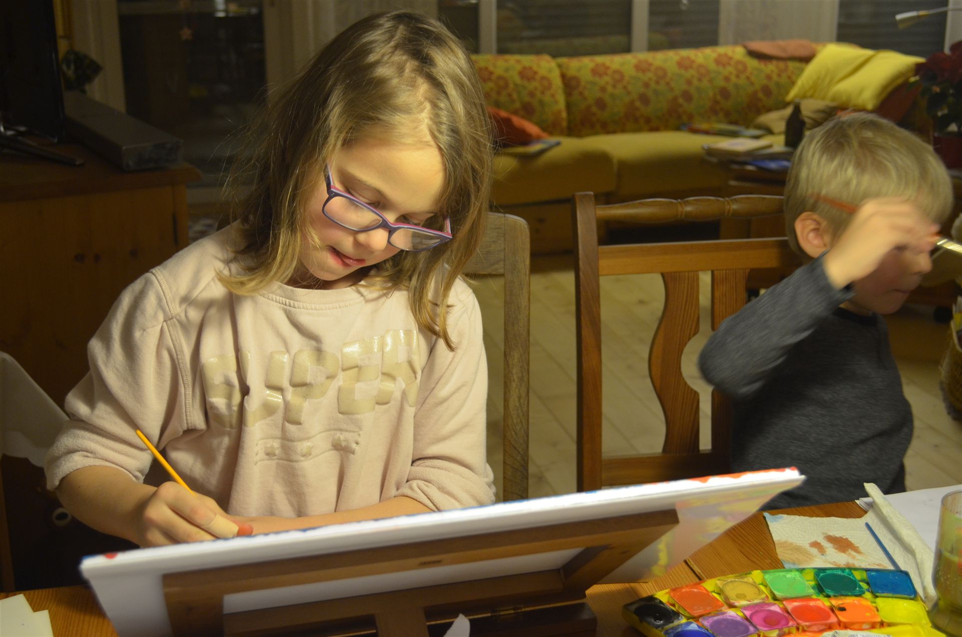 Das Malen von Milena, Nicklas und Luisa bei Oma & Opa macht Freude