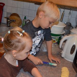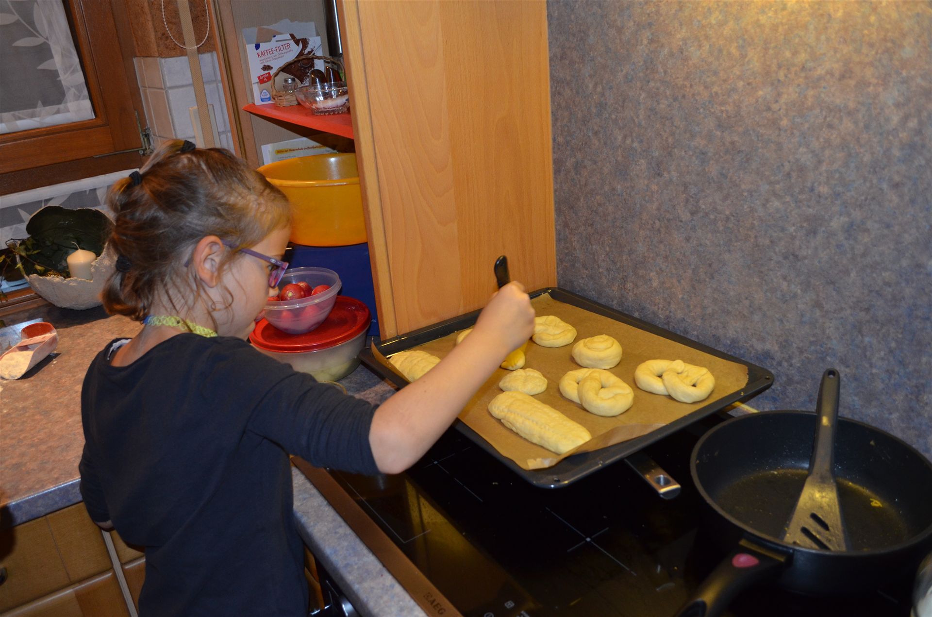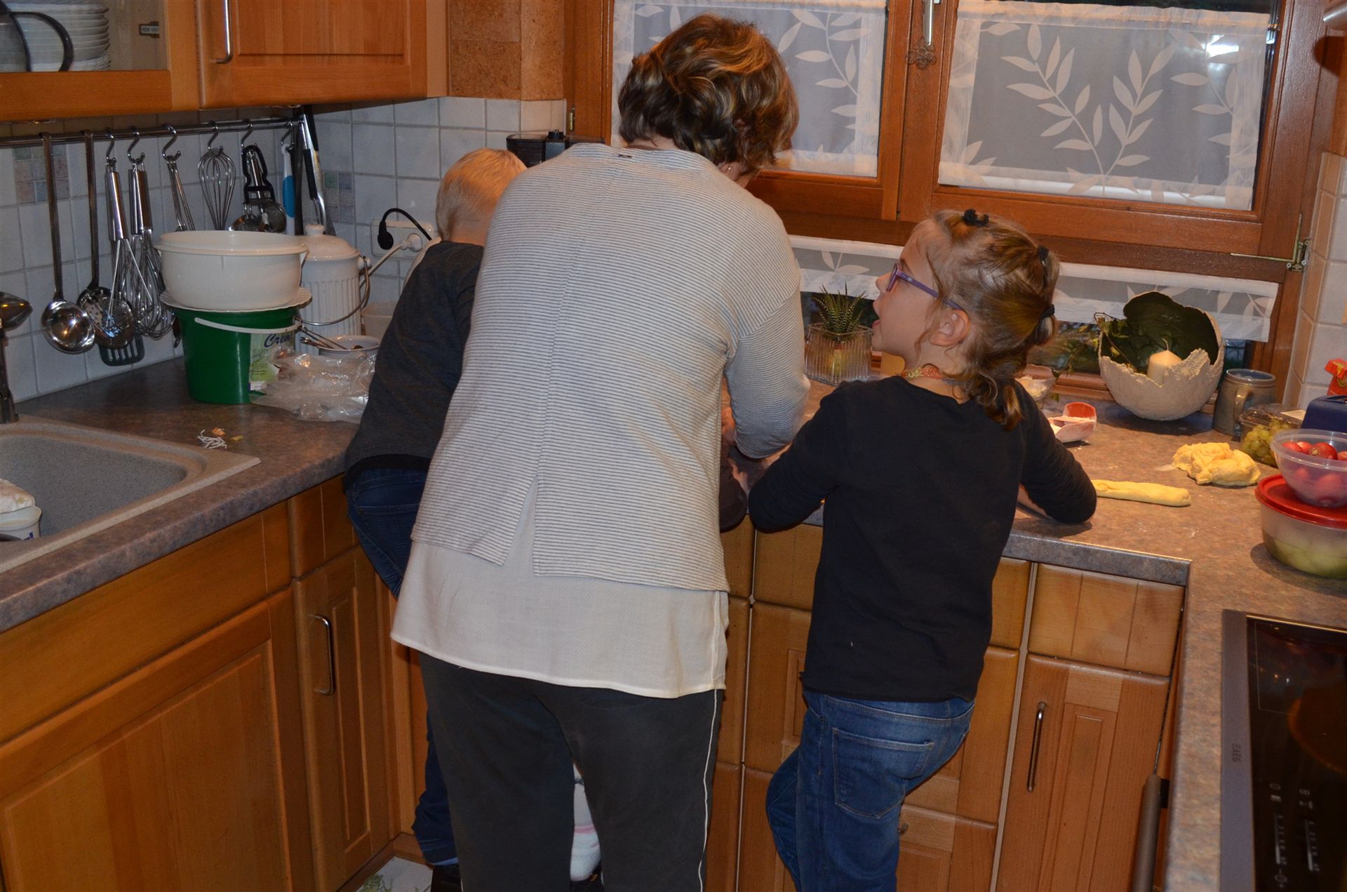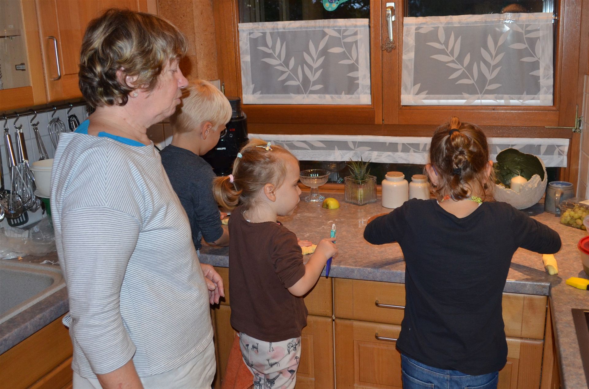 Was die drei alles machen an diesem Tag, mit Oma wird gebacken.