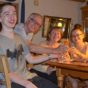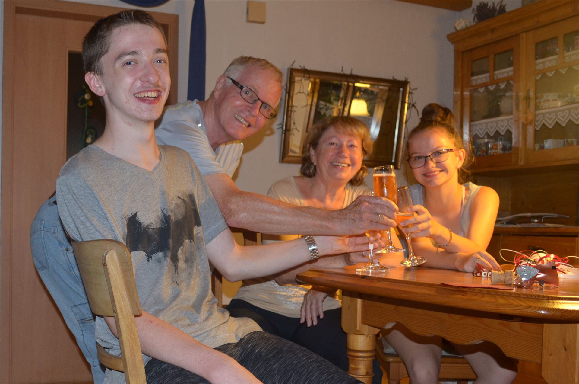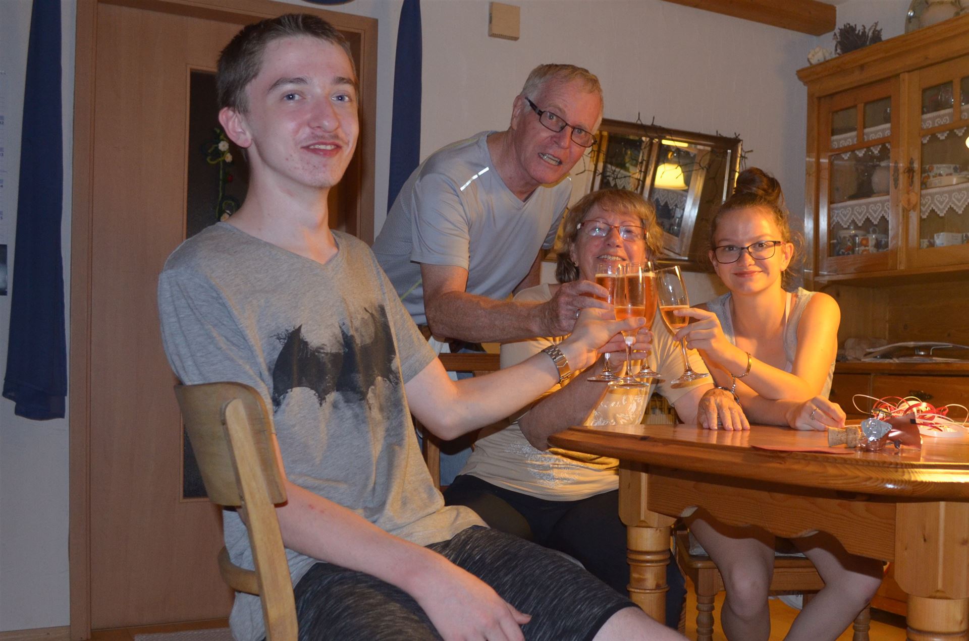 Oma & Opa, sind gemeinsam in Pforzheim beim Gasbehälter, mit dabei Lukas, Nicklas und Lea und für alle von Interesse. Erst aber wird zum Geburtstag angestoßen.