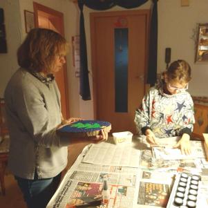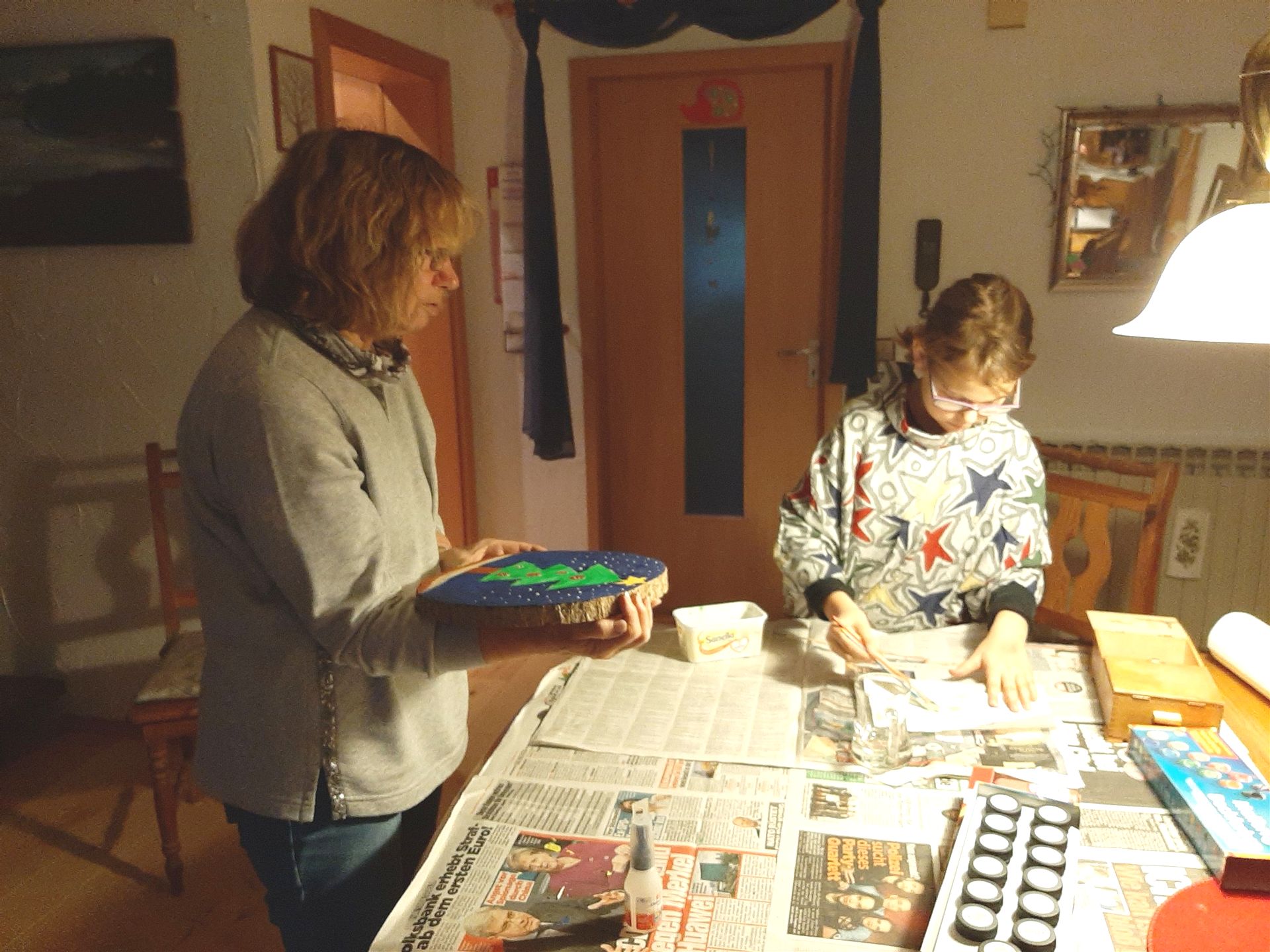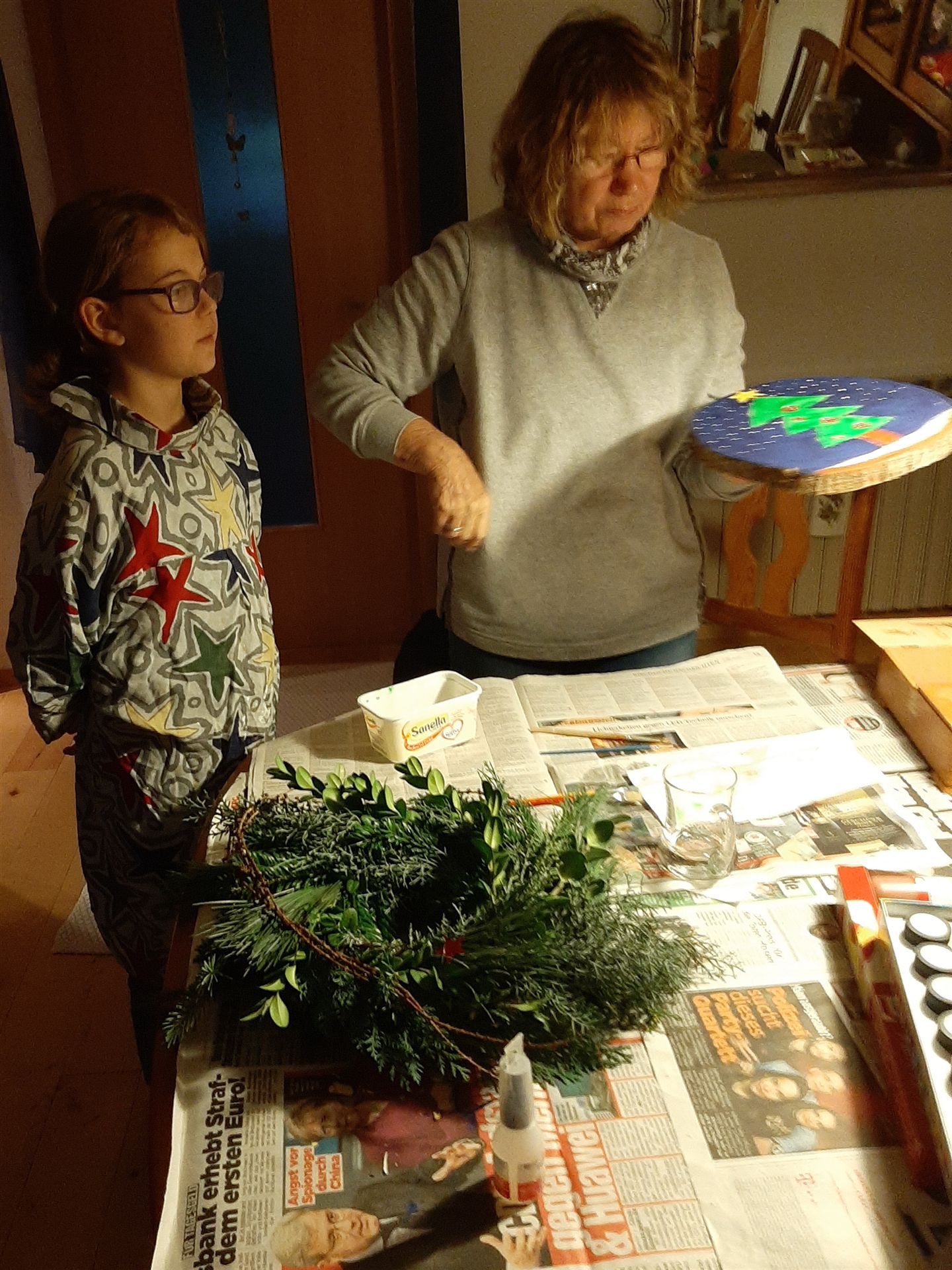 Milena ist bei uns zu Hause und es wird für Weihnachten gebastelt.