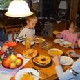 Mit Milena, Nicklas, Luisa sowie Lukas sind wir zusammen Essen (Pfannkuchen & Obst) in Lauffen und dann wird gebacken.