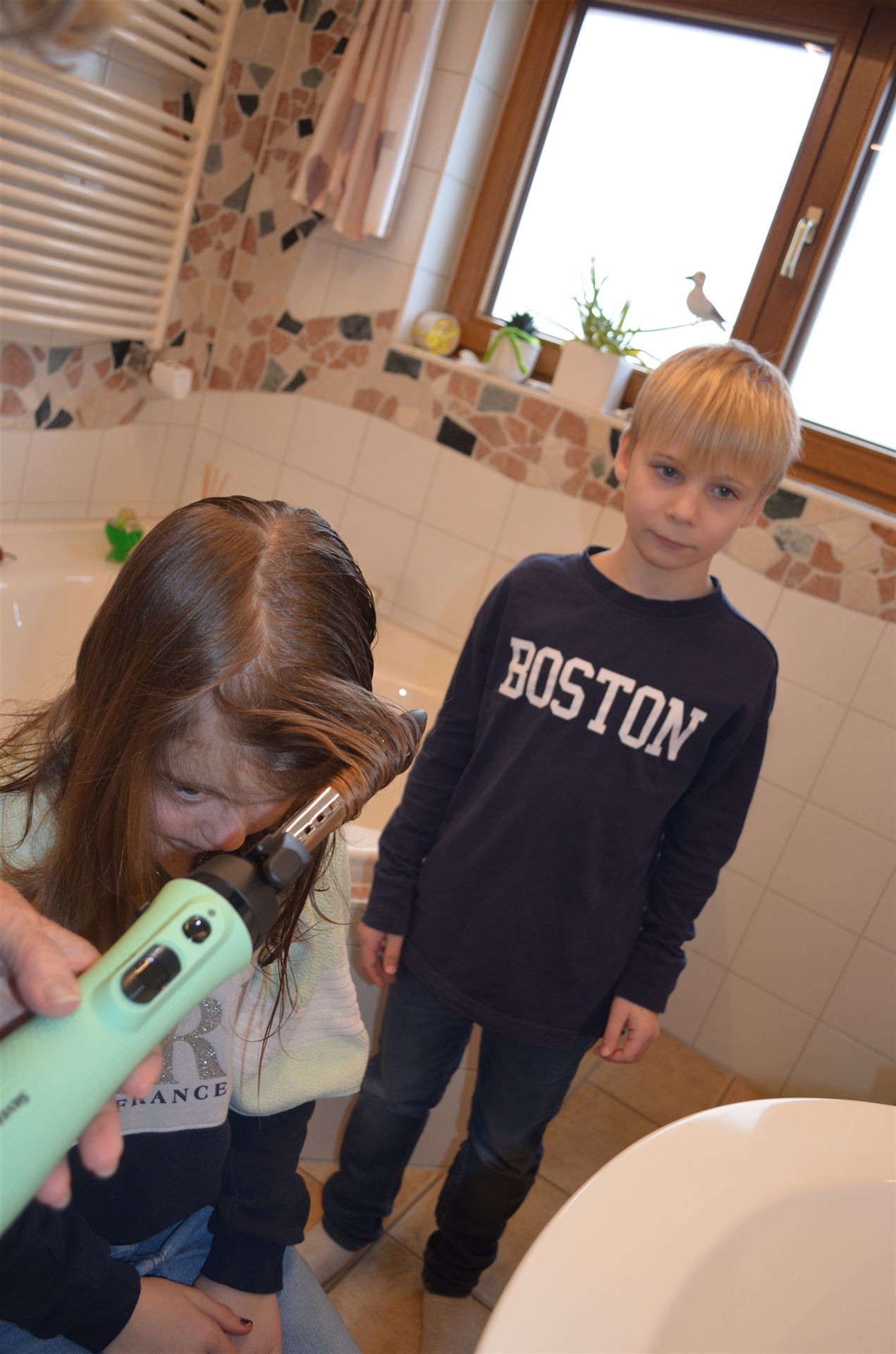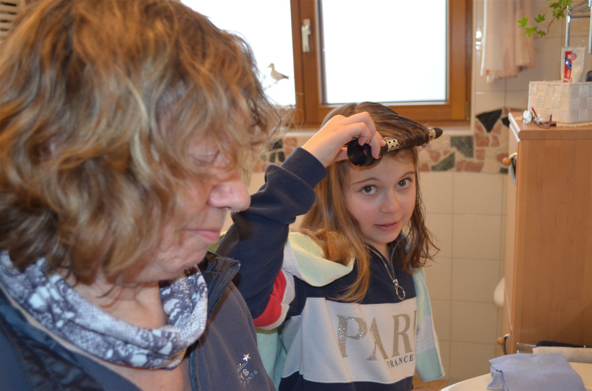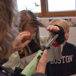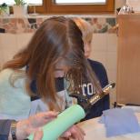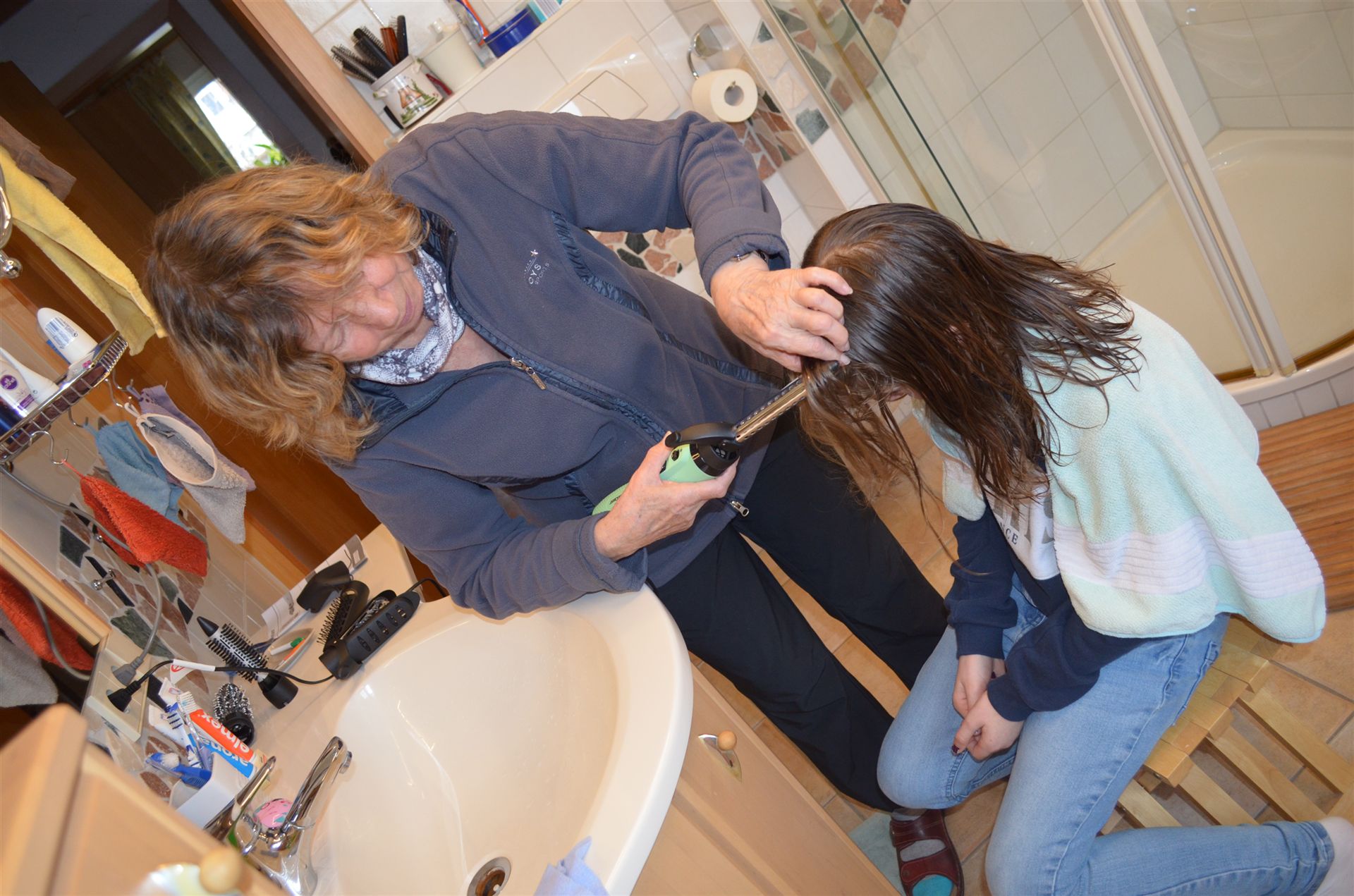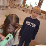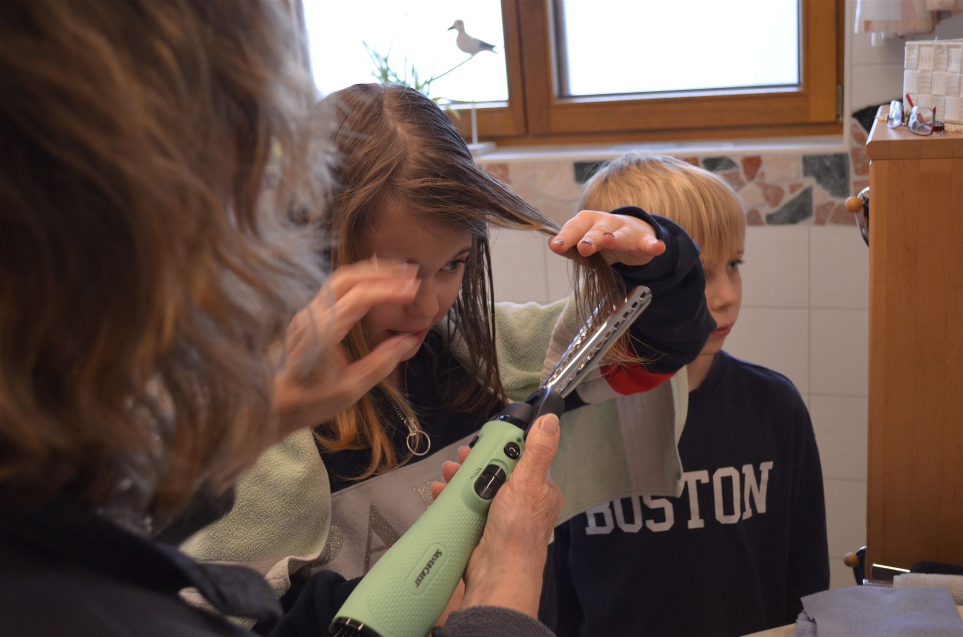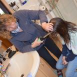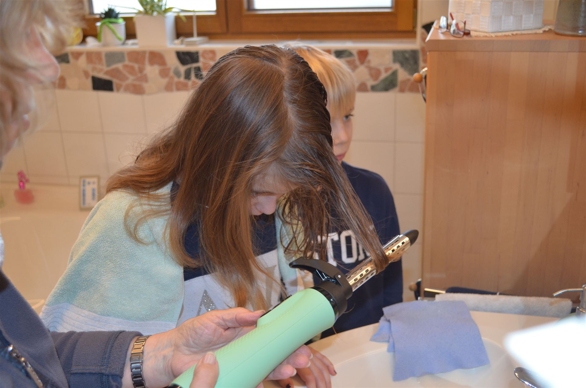 Marlene macht die Haare von Milena und Nicklas sowie Luisa sind auch dabei.