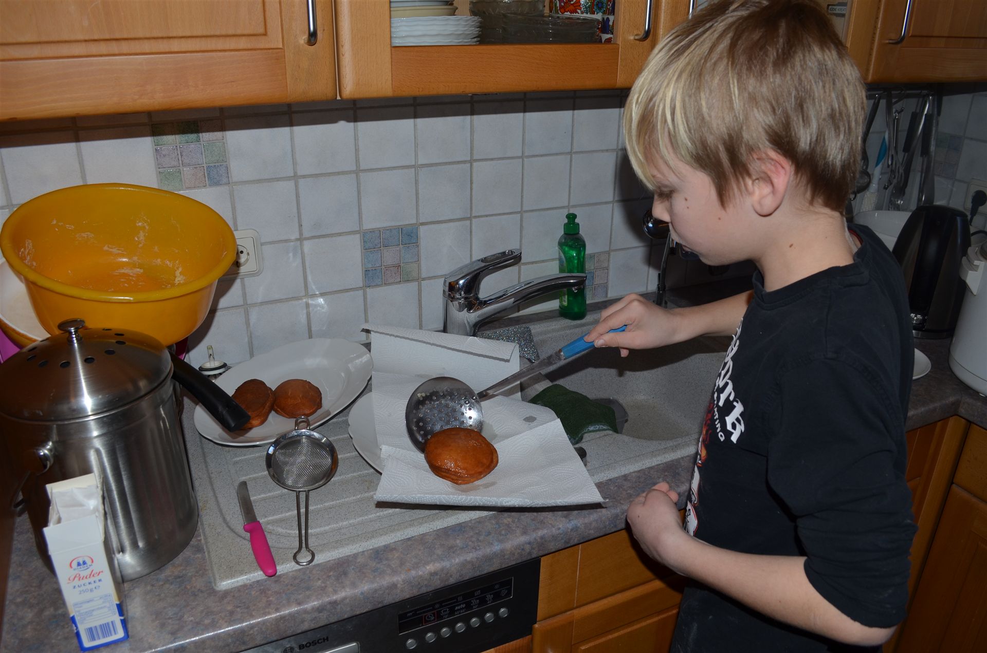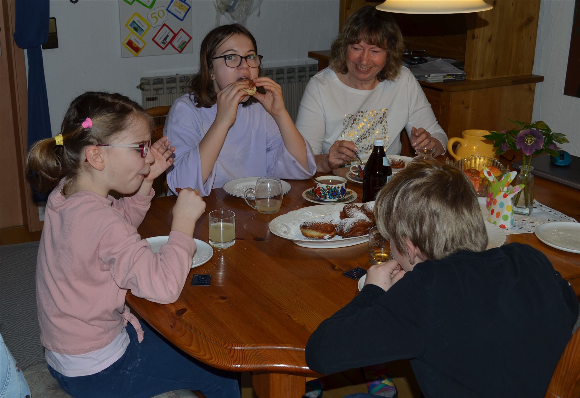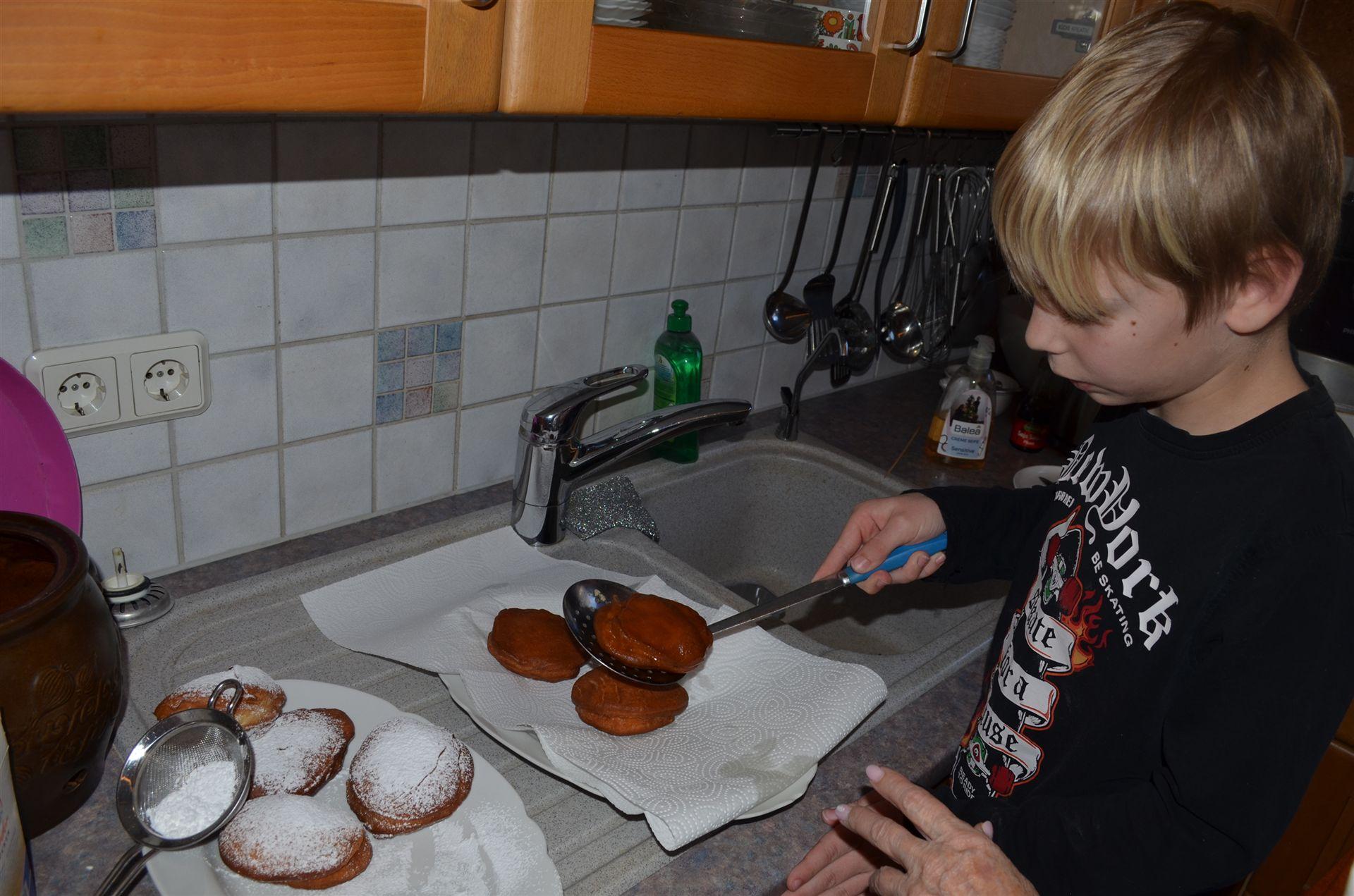 Luisa, Milena und Nicklas sind bei Oma & Opa und es werden Fasnachtsküchle gebacken und natürlich auch gegessen.