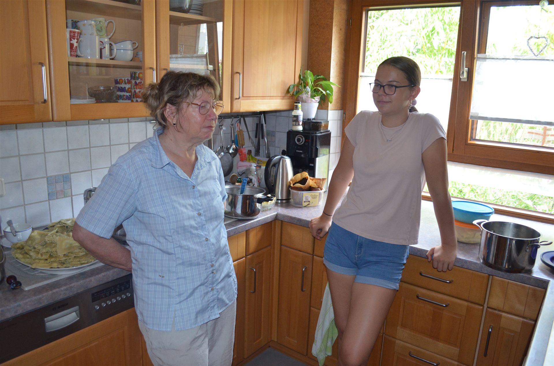 Marlene und Milena machen wieder Maultaschen. Milena ist dabei immer eine große Hilfe. Natürlich nimmt sie auch welche mit nach Hause.