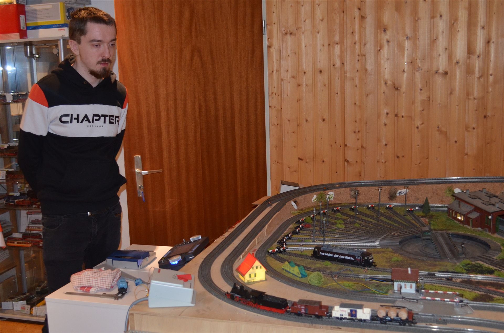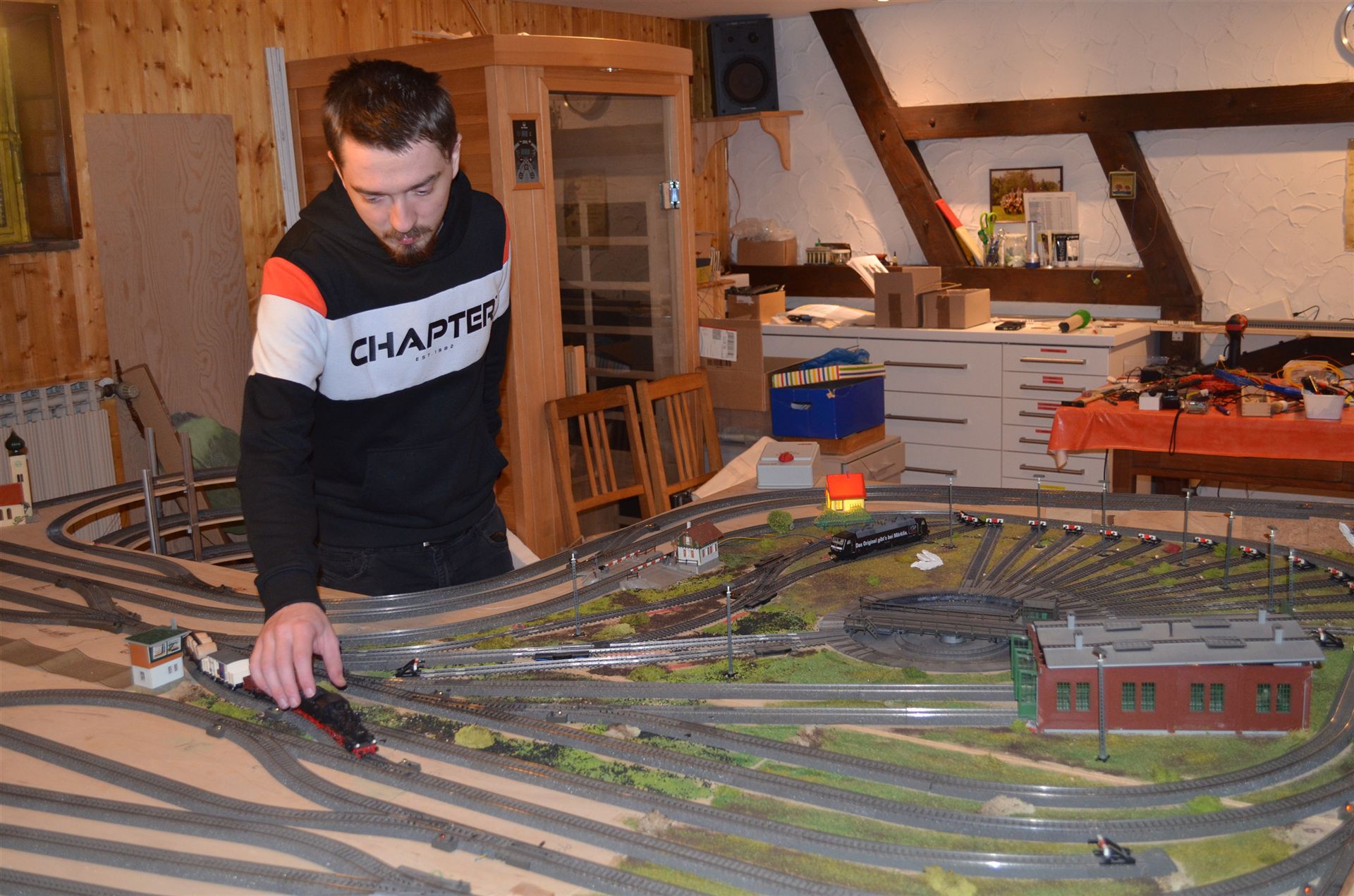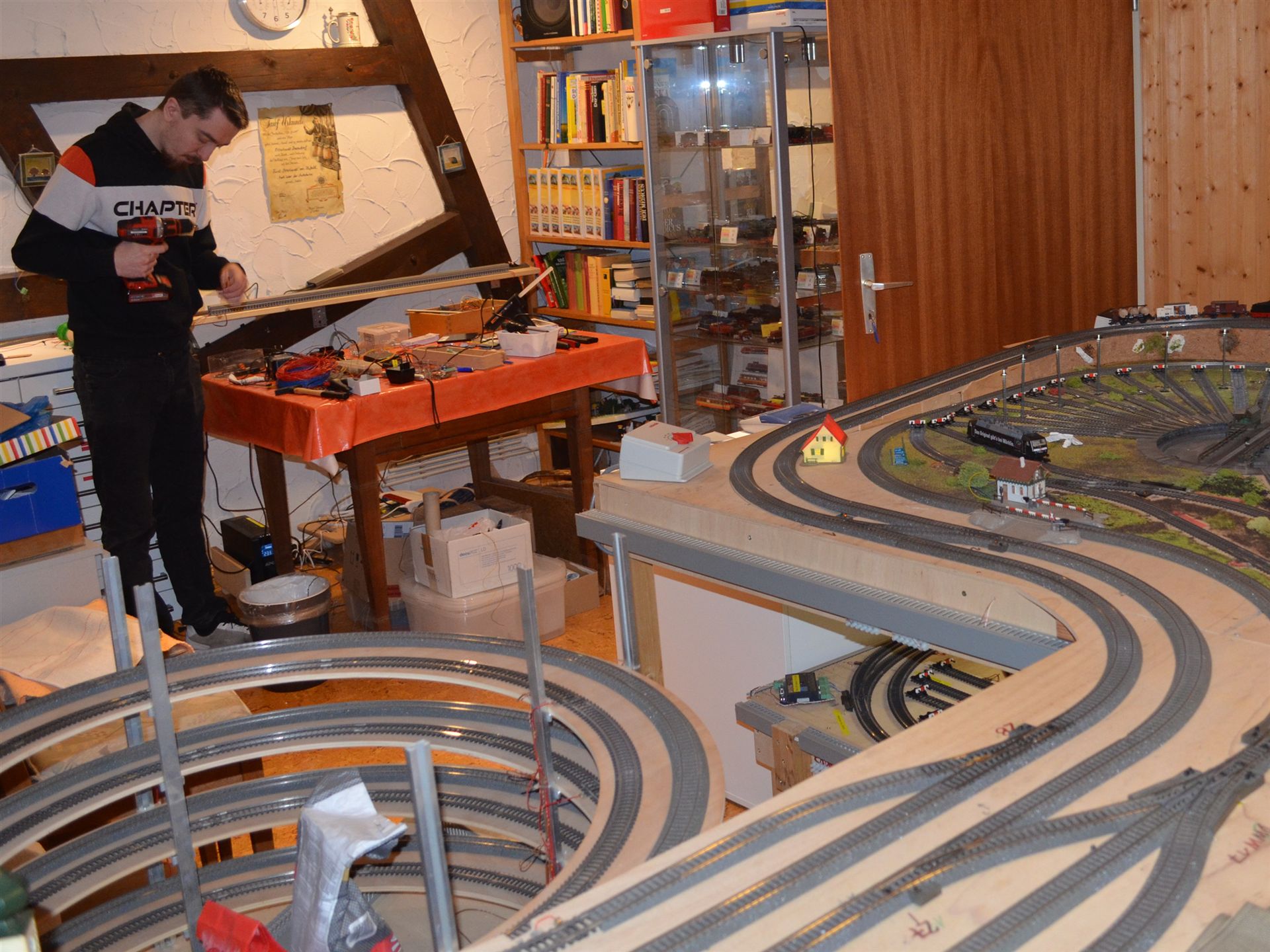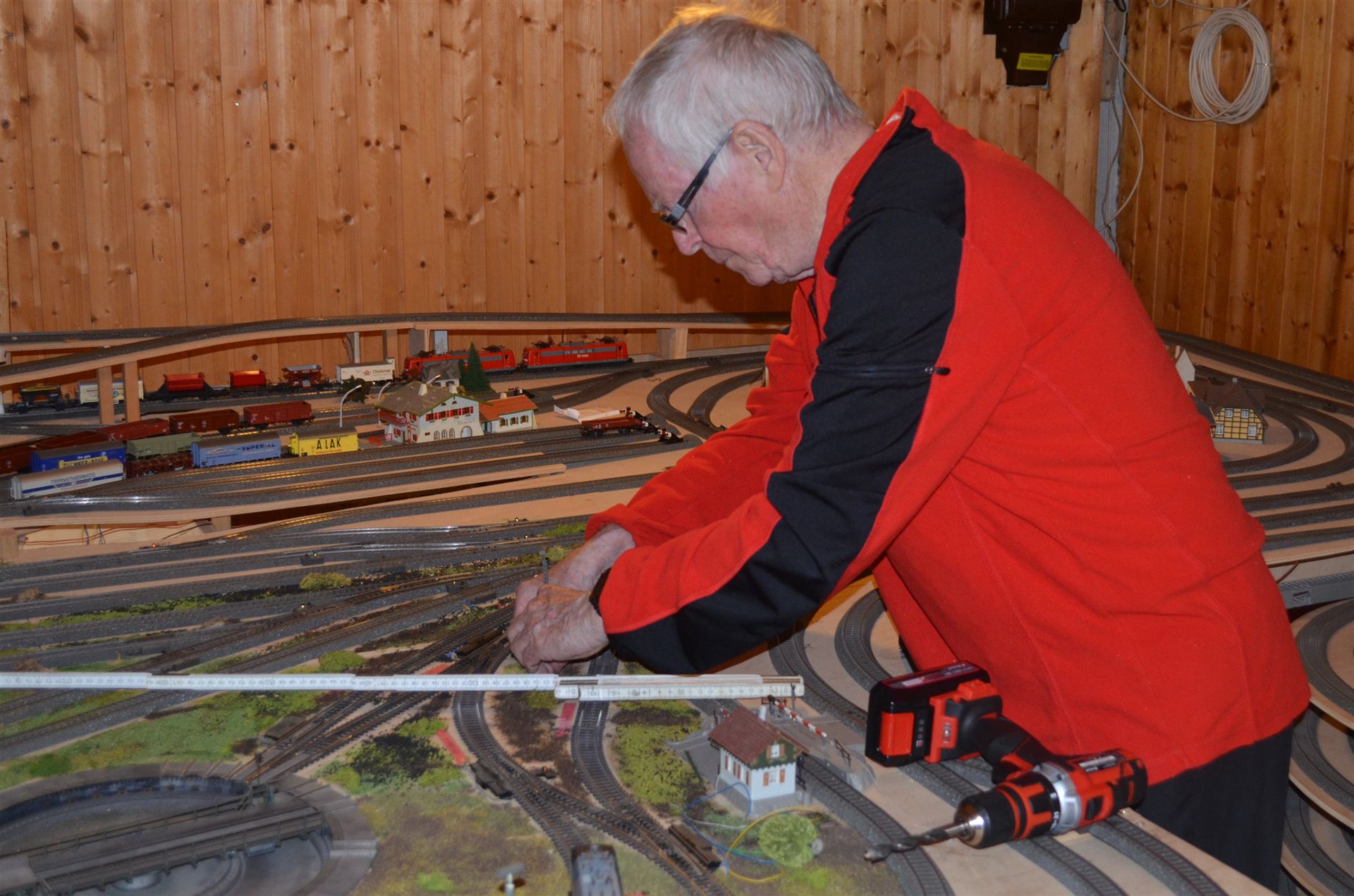 Immer mal wieder kommt Lukas nach Lauffen und hilft Opa beim bauen der Eisenbahn. An diesem Tag wurden Lampen gesetzt.