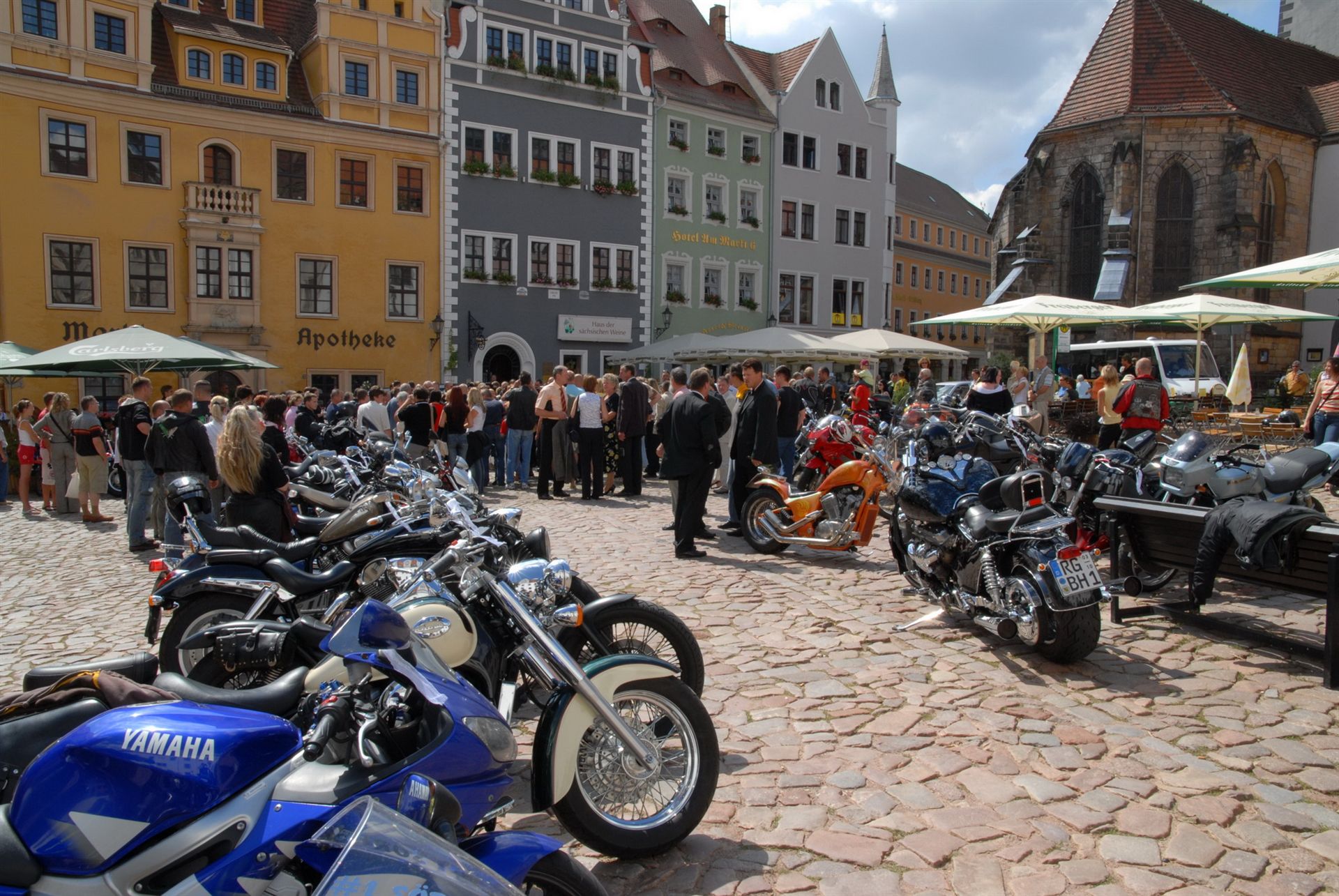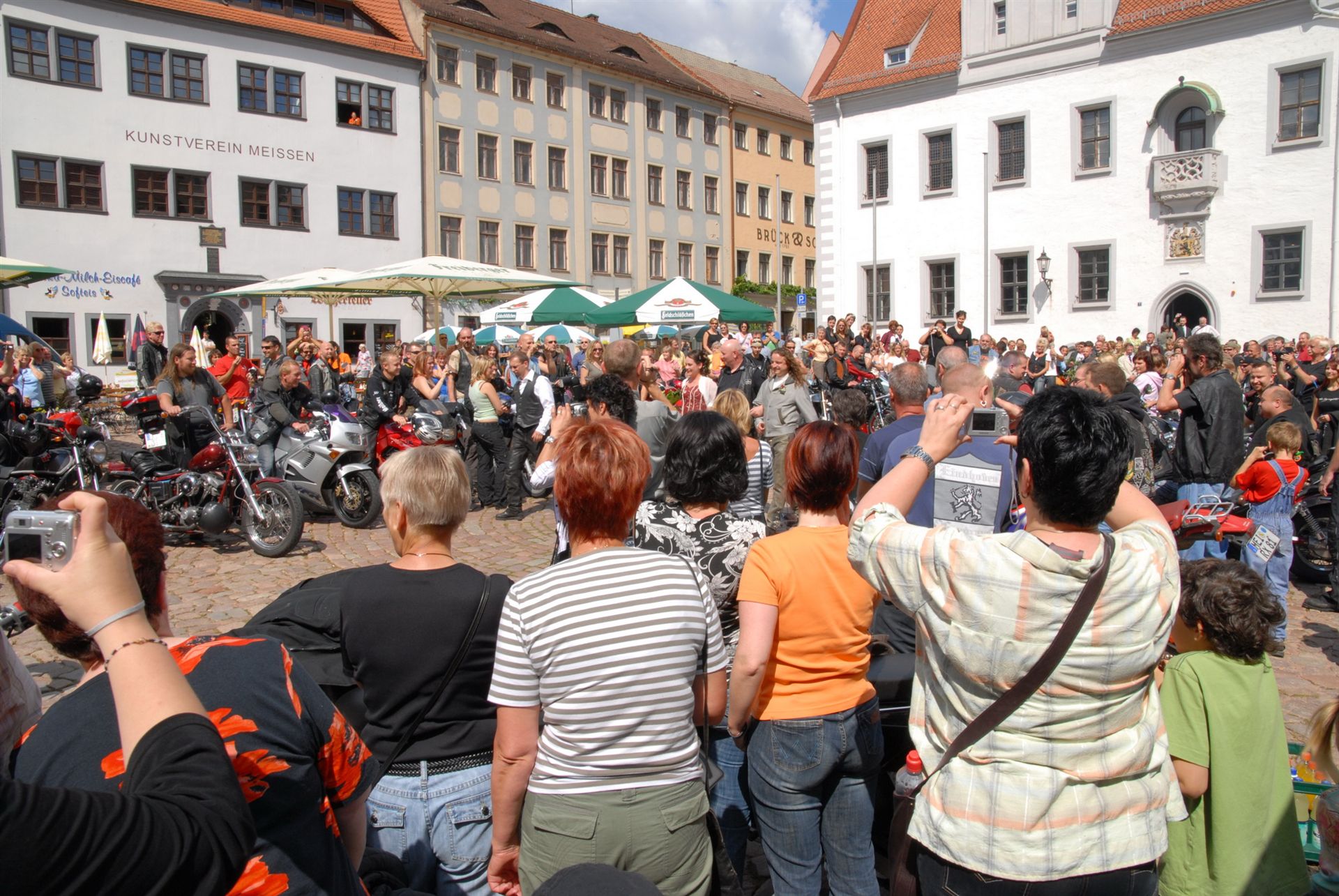 Meisen war unser Ziel. Erst eine Hochzeit mit vielen Motorradfahrern dann über den Dächern von Meisen. Eine wunderschöne Stadt.