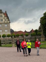 Dieser Tag war leider unser letzter. 50 km sind wir geradelt. Über Markelsheim, Weikersheim, Niederstetten, Herbsthausen nach Bad Mergentheim ging unsere Strecke. Einen Halt im Schloß Weikersheim war dabei. Wetter war kühl aber noch erträglich. Gegen 15.00 Uhr wurden die Räder dann verladen zur Heimfahrt. Mittagessen war in der Herbsthäuser Brauerei.