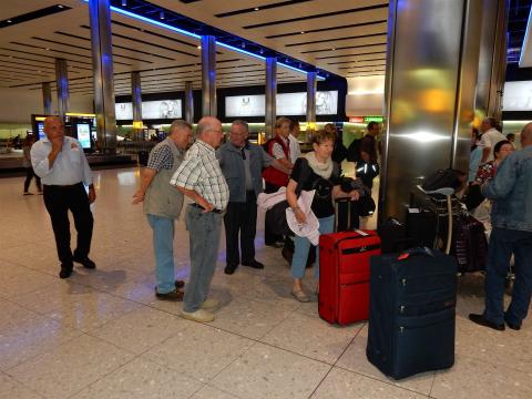 Erst mit dem Flugzeug nach London dann in den Bus und die Rundreise beginnt.